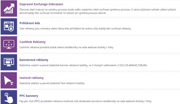 4 typy reklamných balíčkov: 0,01 BTC (členstvo free), 0,03 BTC (členstvo explorer), 0,05 BTC (členstvo profesional), 0,1 BTC (členstvo elite).